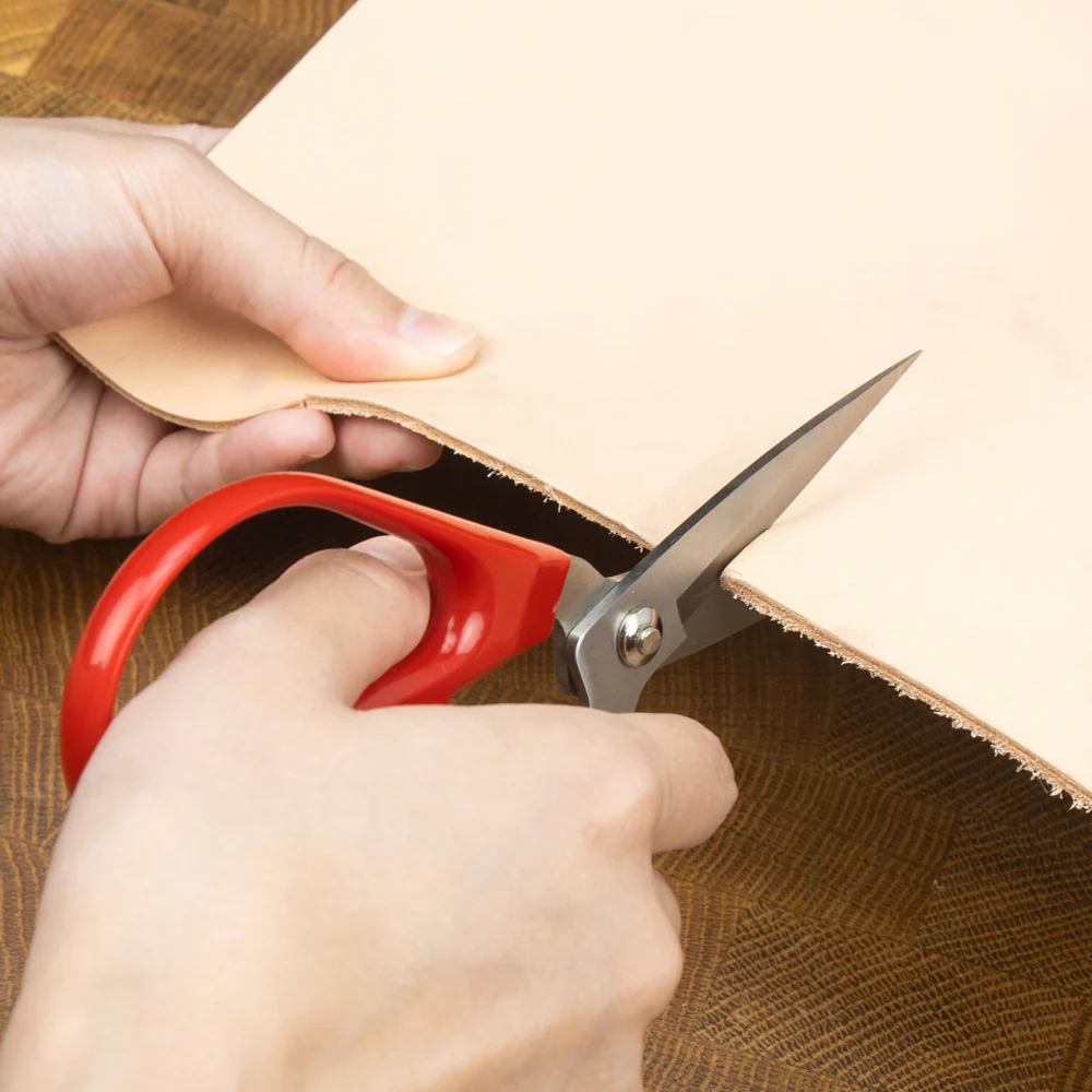 Reliable leather scissors for smaller leatherworking tasks. The scissors feature durable stainless steel blades, making them suitable for cutting leather up to approx. 2.4 mm thick.